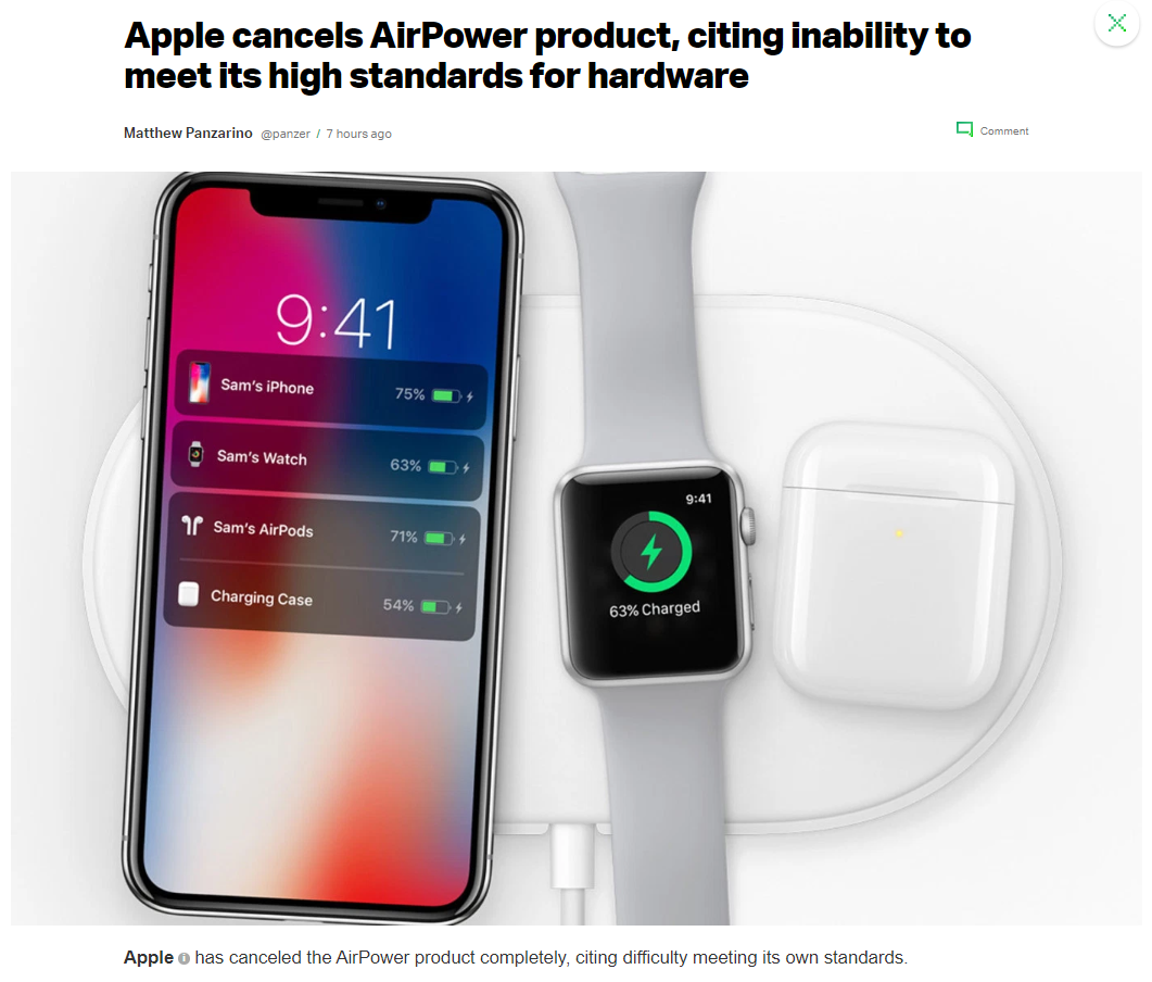Apple cancels AirPower product, citing inability to meet its high standards for hardware