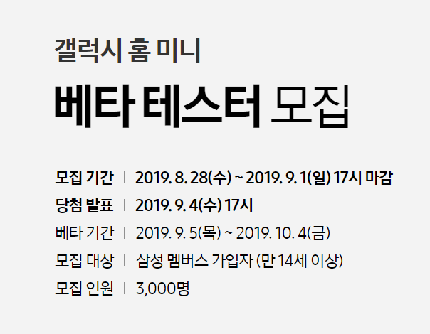 베타 테스트 분께는 갤럭시 홈 미니가 무료로 제공 됩니다.