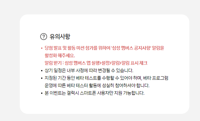 이 점 참고 하셔서 삼성 멤버스 앱 알림을 켜주시기 바랍니다.