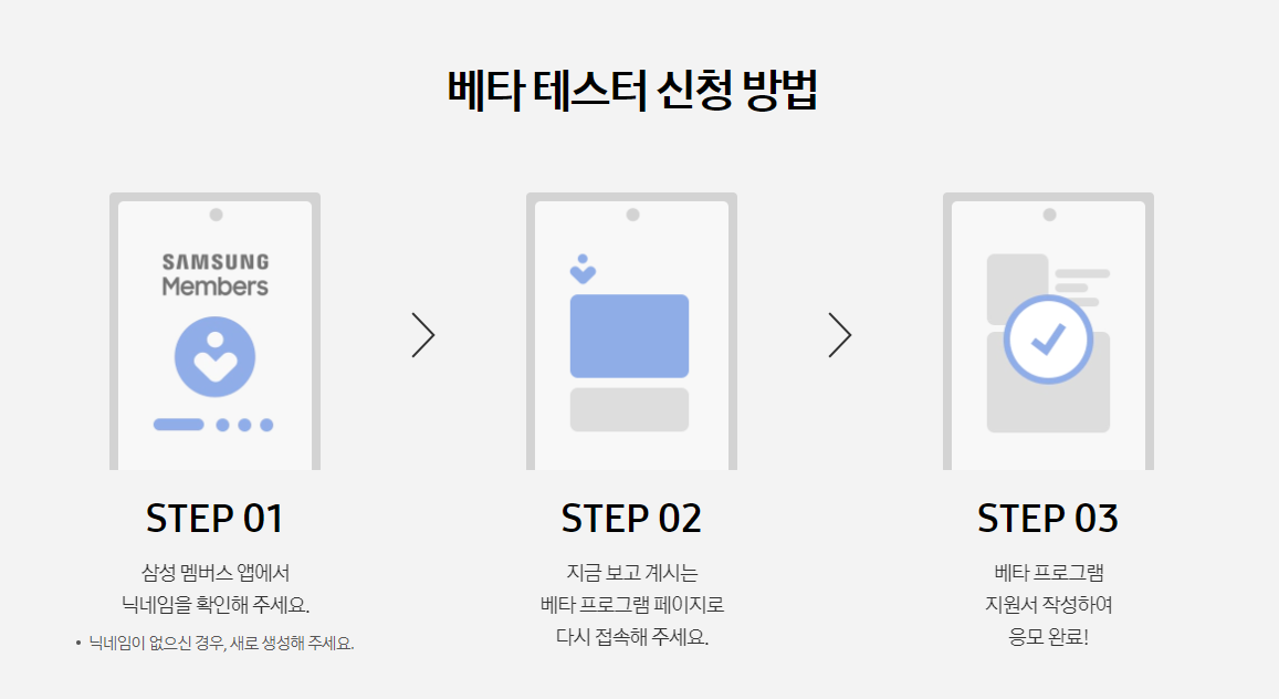 신청 방법은 삼성 멤버스 앱에서 닉네임을 확인 하신후, 마지막에 링크를 남겨드립니다.